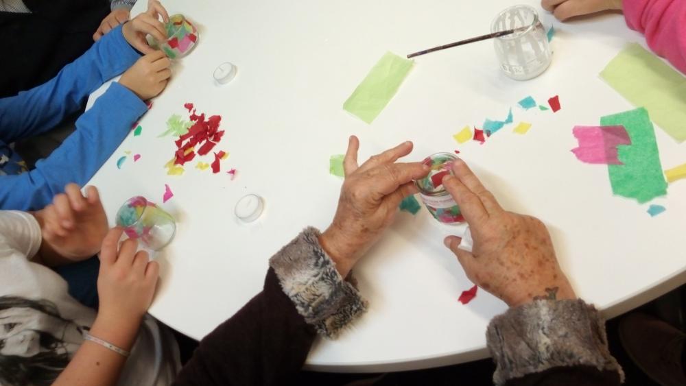 Aquesta tarda hem cantat nadales amb els nens i nenes de l'escola Sagrat Cor i hem fet un portaespelmes de record pel Nadal.