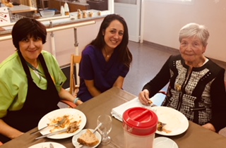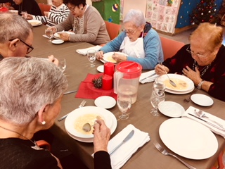 Al centre de dia som una gran familia i ens agrada celebrar el nadal junts, així que hem preparat un dinar molt especial: de primer sopa de galets i de segons braons de xai. El postre, ja sabeu.... turrons, polvorons i neules!! Que bonic compartir aquests moments amb la gent que estimem.