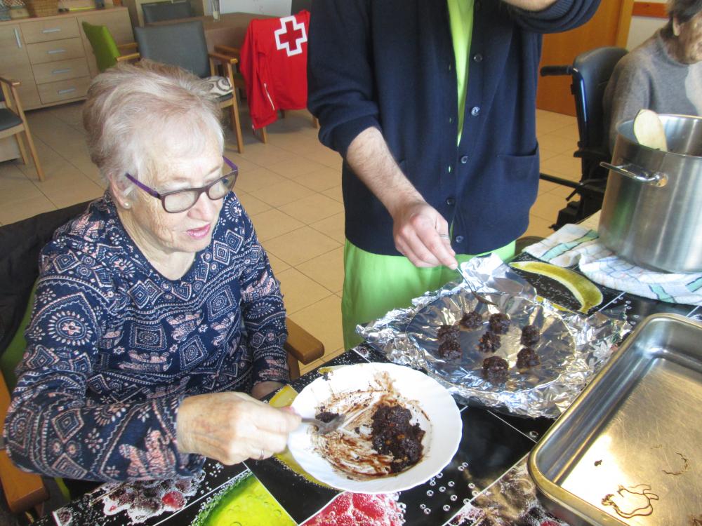 Som uns artistes! Primer vam picar tots els fruits secs, després juntament amb l'equip de Creu Roja vam desfer tota la xocolata i vam passar a realitzar els bombons. Ens van sortir boníssims!! Per acabar els hem posat ben embolicats per portar cap a casa i que els tastin tothom que vulgui!