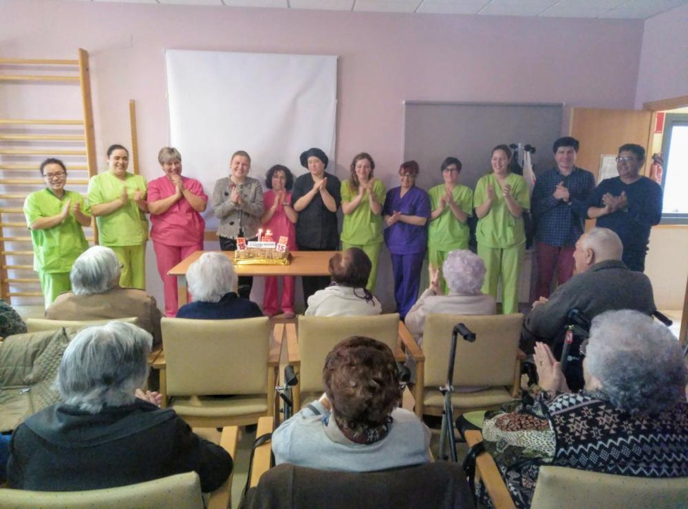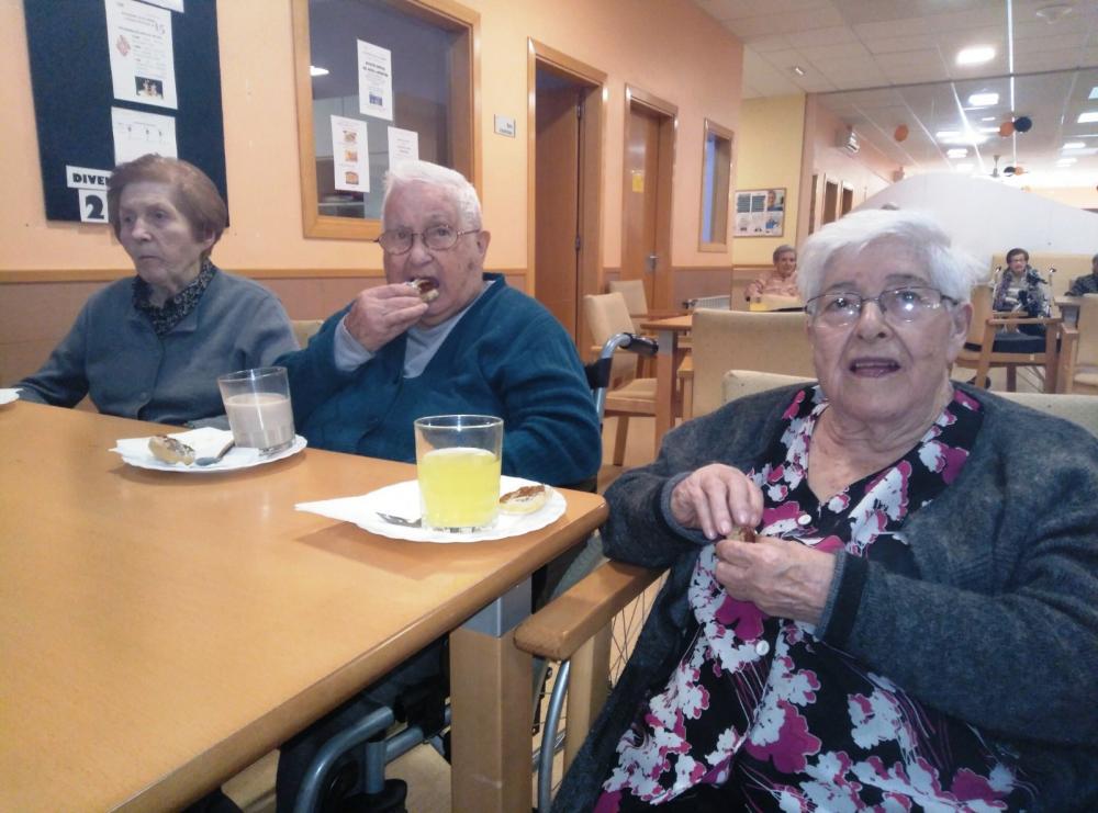 Després els nostres residents van poder degustar un menú especial que va comptar amb un aperitiu sorpresa, crema de verdures amb cruixent de paté de primer plat; i de segon plat, galta de porc amb crosta i fruits secs amb verdures. Per postres vam poder bufar les espelmes del pastís d'aniversari i vam poder brindar amb cava tots junts.