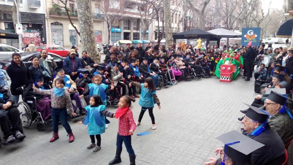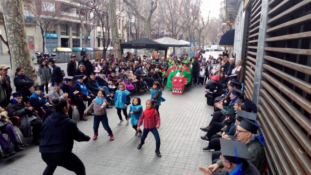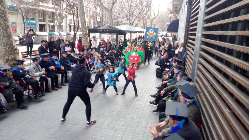 A la tarda de divendres primer vam poder veure la rúa de les escoles del barri i després vam tenir la nostre "festa de graduació" amb diplomes i tot!!