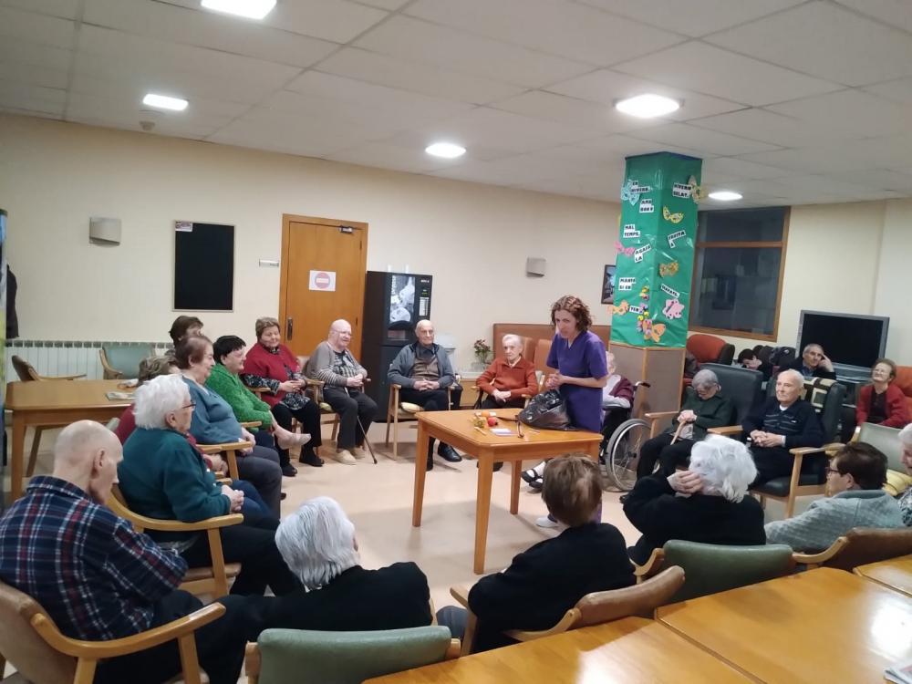 Primer van posar uns quants objectes en un sac i van anar passant-la pels nostres residents. Ells posaven la mà a dins i sense mirar havien d'endevinar els objectes que hi havien. També vem treballar la memòria, ja que intentava que els recordessin per la propera volta.