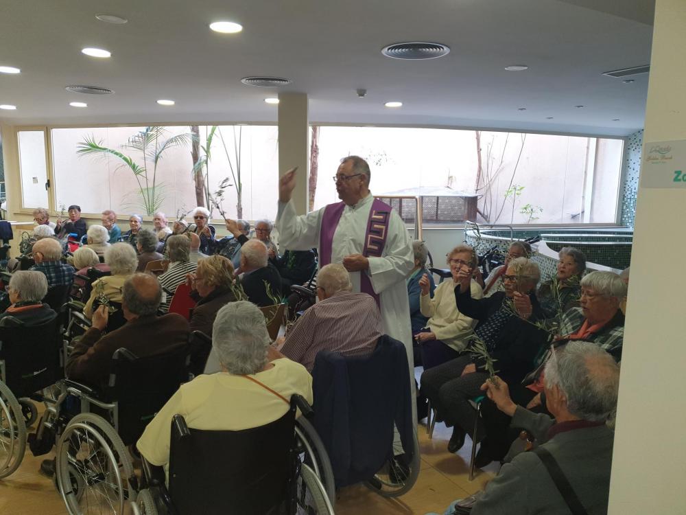 Hem celebrat aquesta setmana al centre la missa de Rams amb la tradicional benedicció de la palma/olivera. Gràcies a la implicació de mossen Carlos i de les voluntaries d ela parròquia.