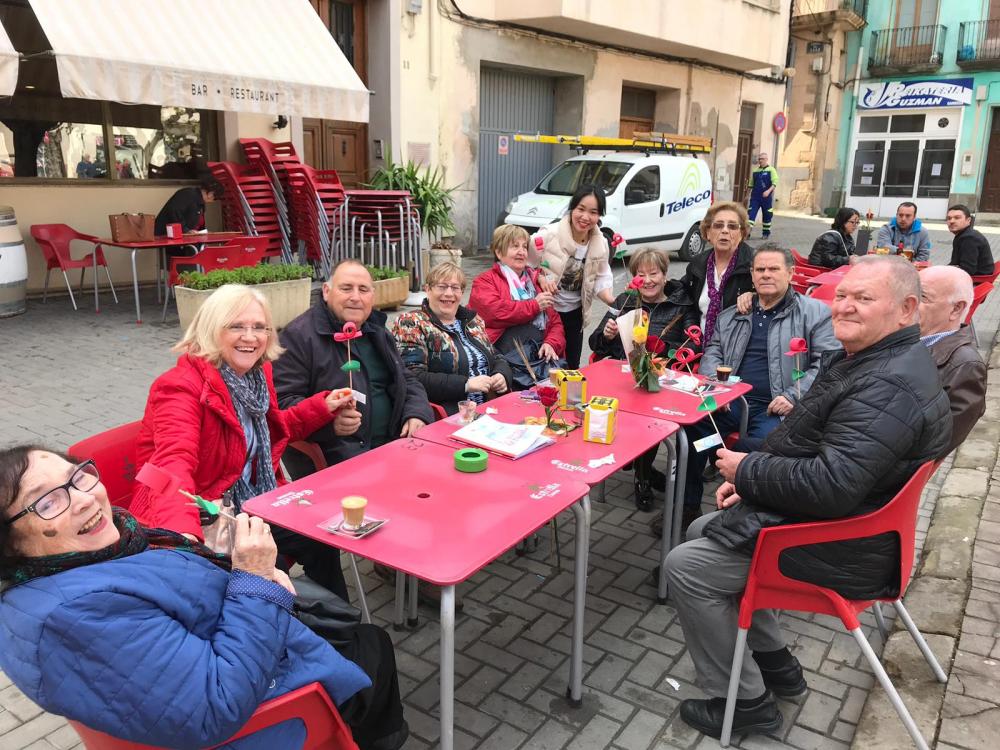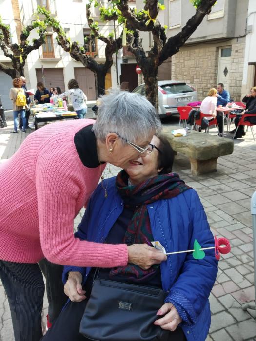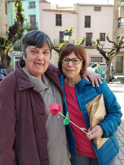 Pel matí hem fet sortida a la plaça i allí hem muntat paradeta per tal de poder repartir les roses que els nostres residents han anat fent aquests dies.