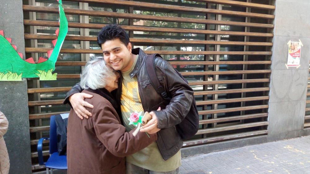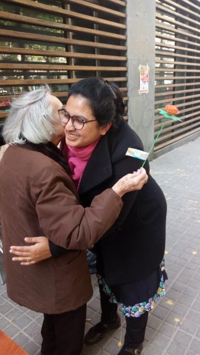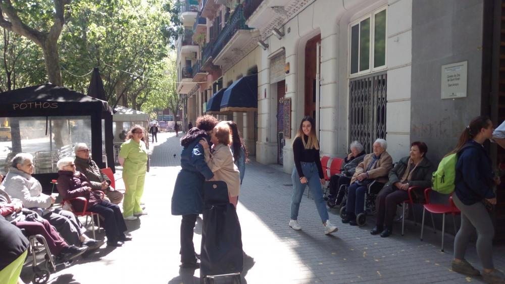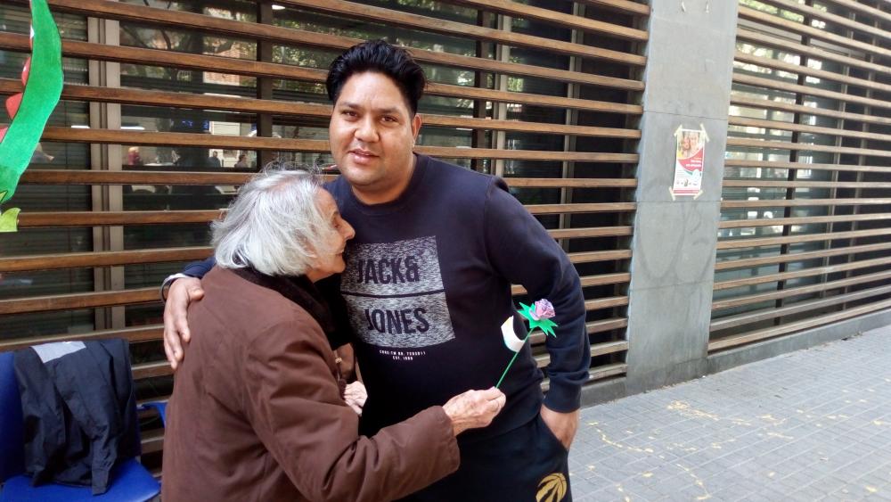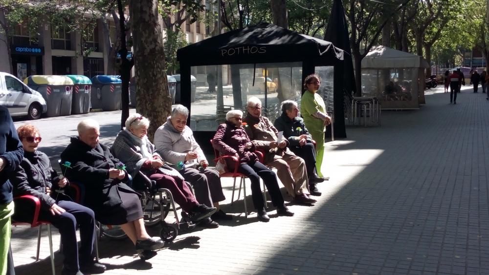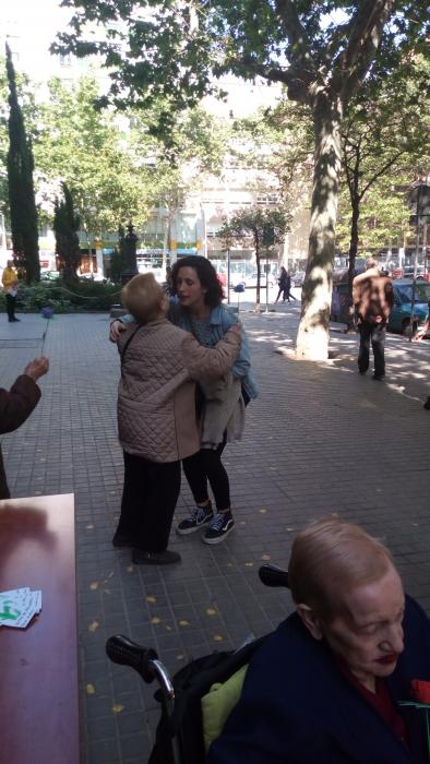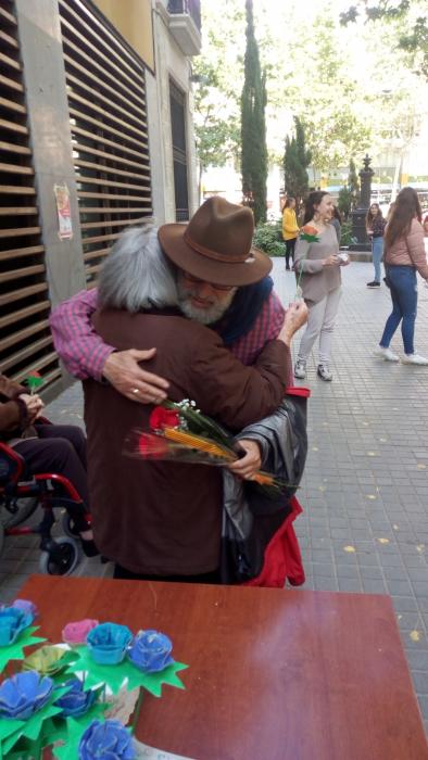 El dia de Sant Jordi vam sortir, com cada any, a repartir roses fetes per nosaltres a canvi d'abraçades.