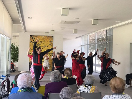 Durant el mati, vam rebre la visita d'un grup de sevillanes. Ens van fer uns quants balls i al finalitzar, els més atrevits també van sortir a ballar. Despés, vam gaudir tots junts d'un piscolabis per esmorzar.