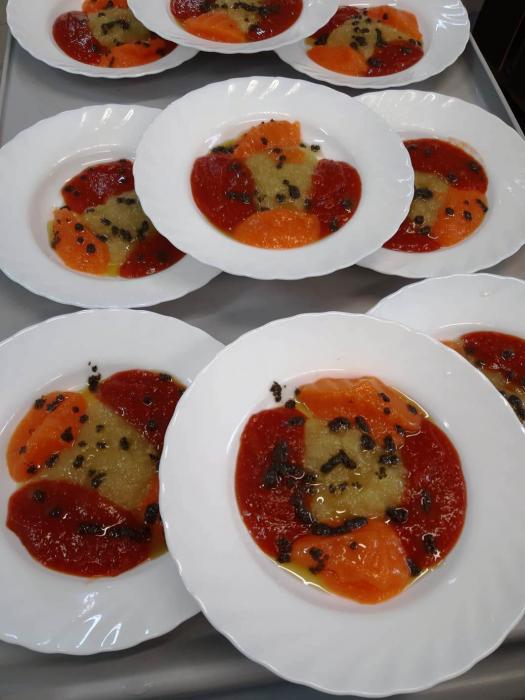 Compartim imatges d'alguns dels últims plats texturitzats que han preparat les nostres cuineres: Amanida en tres textures i bunyols amb tomàquet.