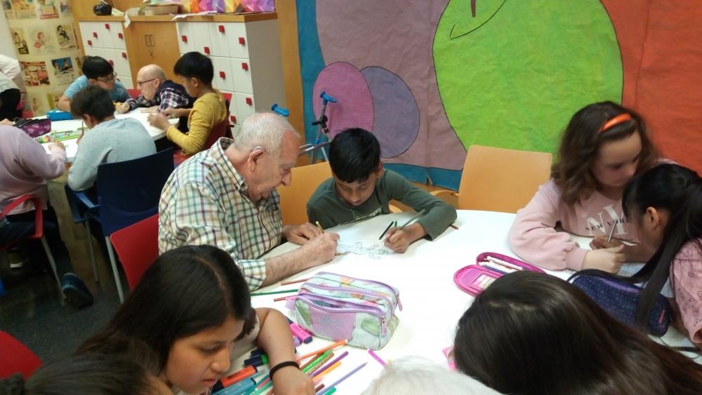 Amb motiu de la setmana solidària que celebren cada any els nens i nenes de l'escola Sagrat Cor Aldana, dimarts van venir els alumnes de 6è a treballar amb nosaltres uns dibuixos d'obres de Antoni Gaudí. I avui al matí hem anat a fer una volta per la bnotiga Solidària que tenen al pati de l'escola.
