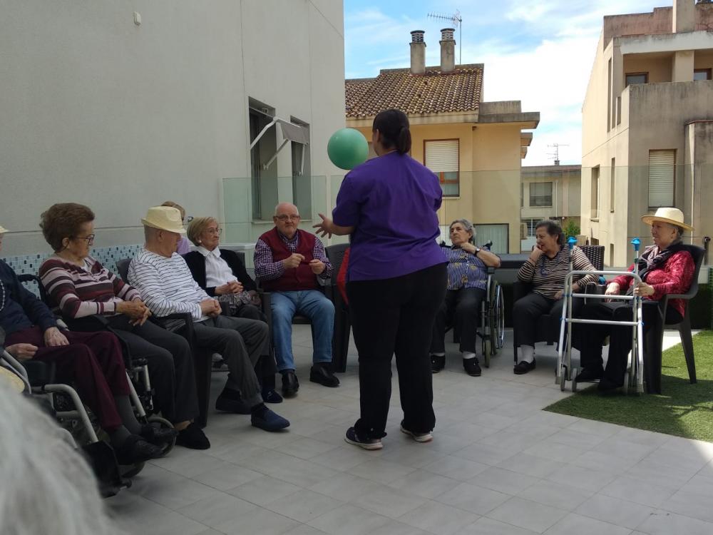 Aquest matí, aprofitant el bon temps que feia, em sortit a la terrassa per fer gimnàstica i activitats amb pilota.