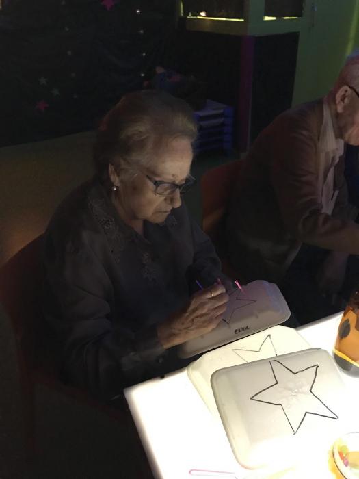 En acabar l'explicació del conte els avis/es van gaudir d'una estona a l'aula de llum.