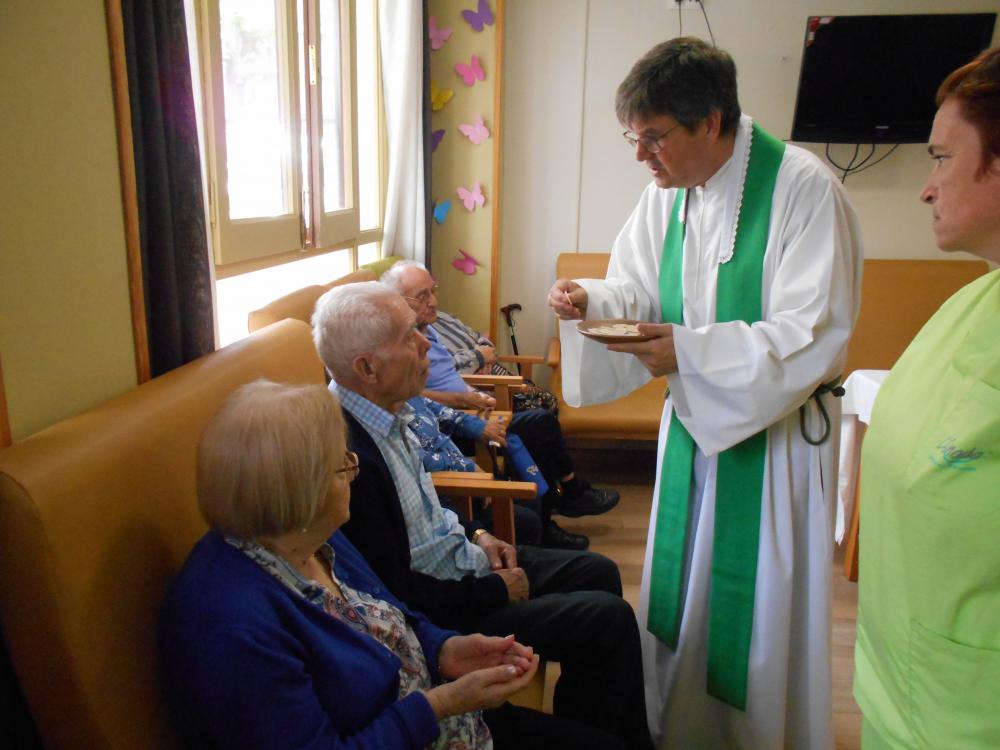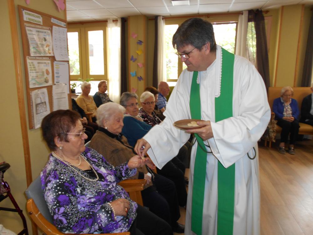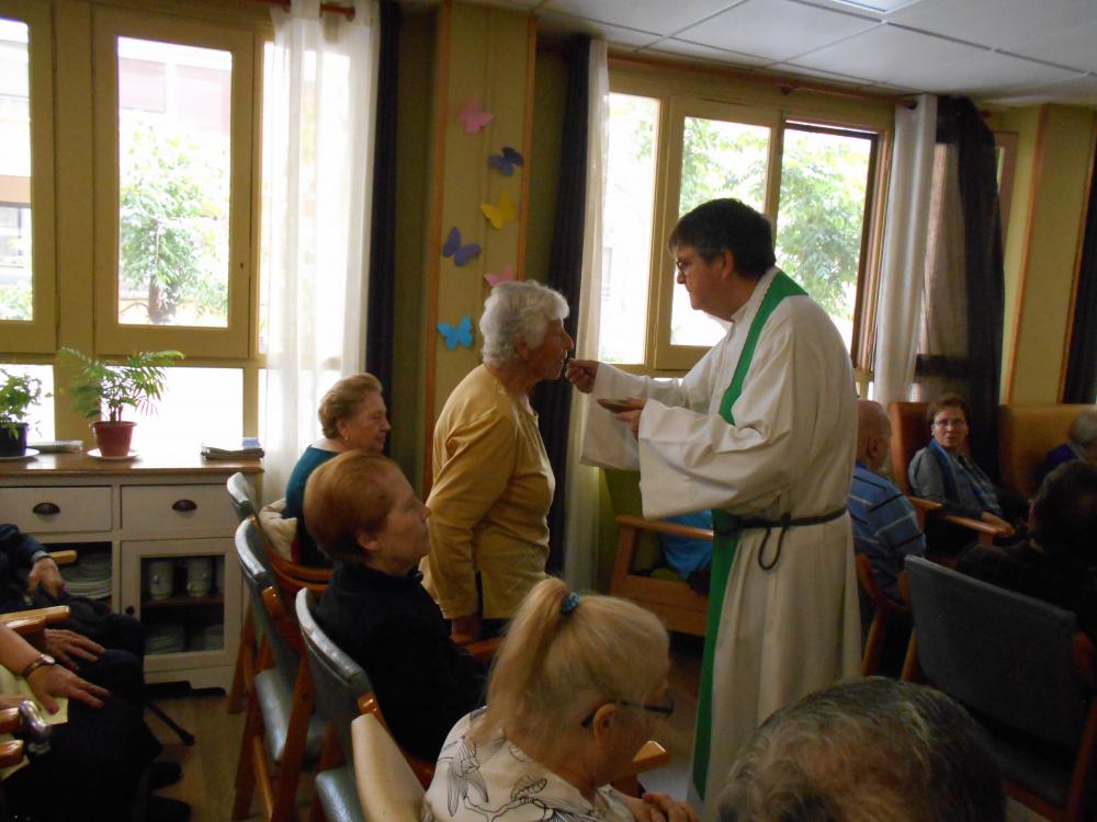 Avui hem celebrat la missa mensual al centre. És una activitat que agrada molt als nostres usuaris i que està convidat tothom qui vulgui venir, com fan alguns veïns de la comunitat. Ens agrada rebre visites i poder gaudir plegats.