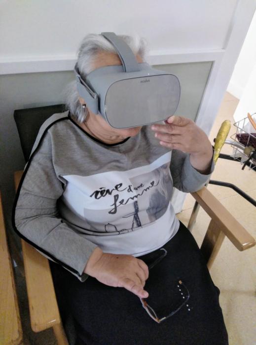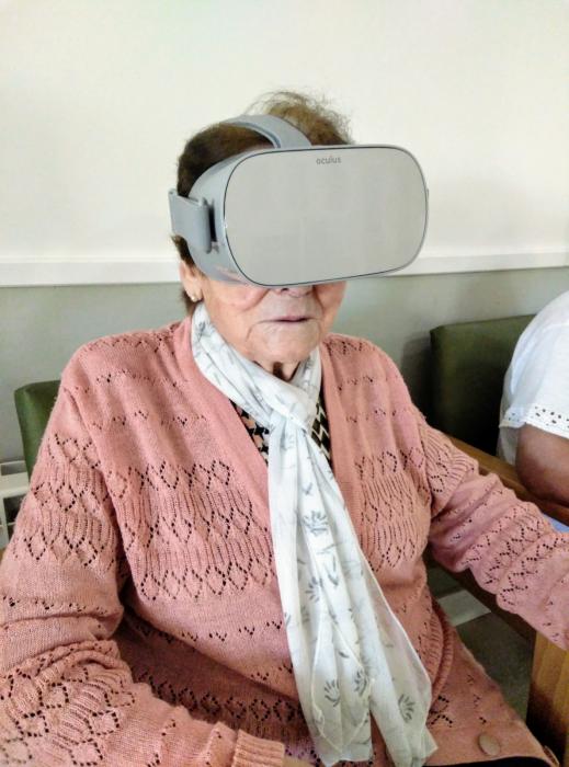 Ahir, amb les ulleres de Realitat Virtual, vam viatjar virtualment a diferents paisatges de platja i de muntanya.