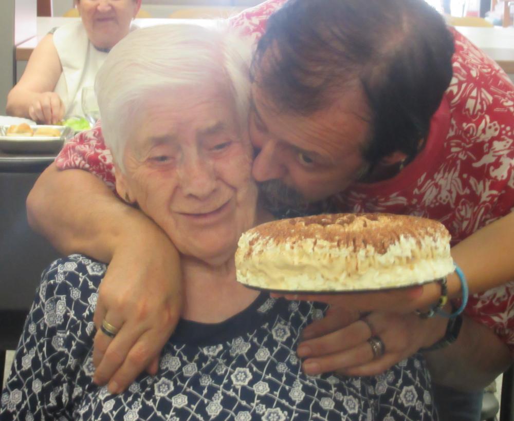 La nostra estimada Isabel porta un pastís per celebrar el seu sant amb nosaltres i, a canvi, rep un munt de petons. Aquí en posem uns quants. Felicitats, bonica!