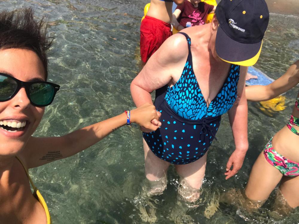 Pel matí vam anar a la platja Pixavaques, allí ens vam trobar amb uns quants residents de la residència d'allà i vam fer un beure; després ens vam banyar!