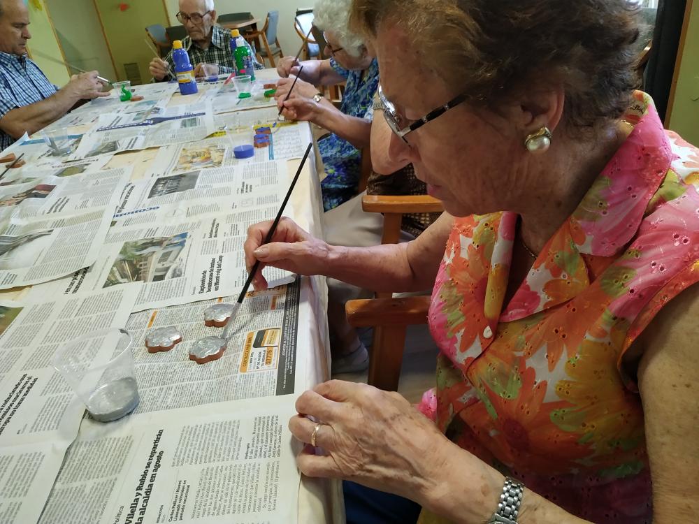 Aquesta setmana estem confeccionant imants per la nevera. Vam modelar el fang, pintar i envernissar les figures. És una tasca molt entretinguda. Els avis s'impliquen molt i tenen cura del detall perquè quedin bonics.