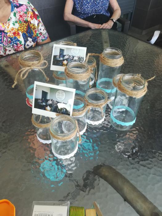 La néta de la Sra. Susi es casa el mes vinent! Els nostres residents han col·laborat activament en la decoració del seu casament. Durant les últimes setmanes hem estat preparant pots decoratius pels centres de taula, i han quedat genials!