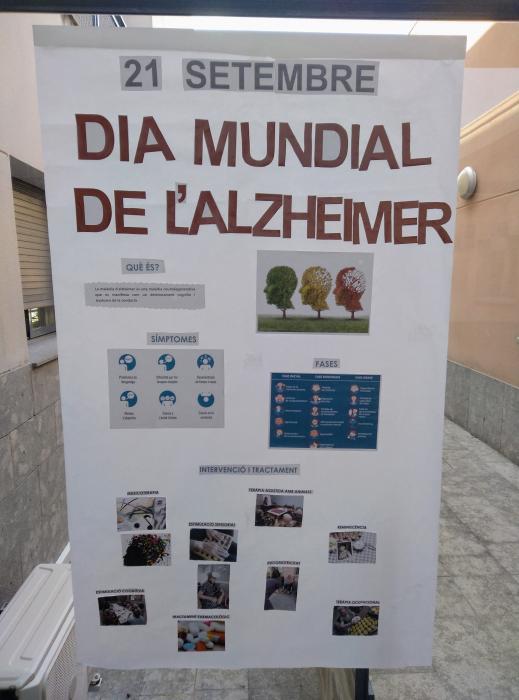 Avui hem fet una activitat en que hem estat parlant sobre la Malaltia d'Alzheimer, els seus símptomes, fases, evolució i tractament. Tots junts, hem fet un mural amb alguns dels aspectes més rellevants.