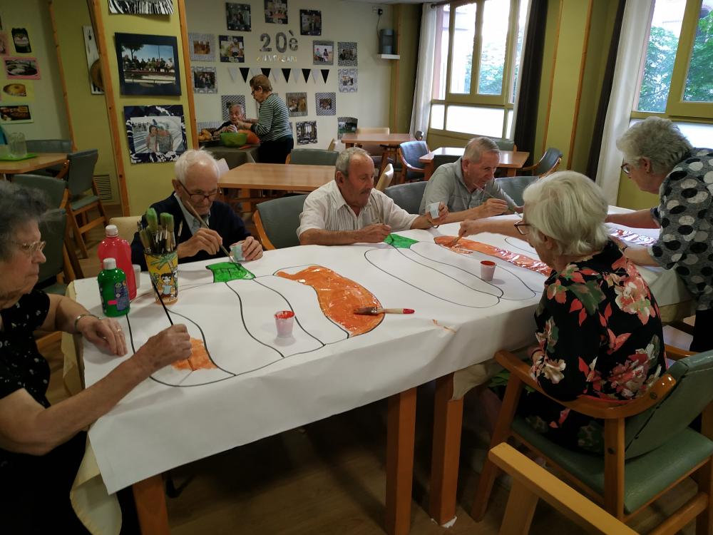 Avui hem començat a confeccionar la decoració per la festa de Castaween! Hem pintat unes carabasses gegants. En el centre fusionem les dues festes emblemàtiques, la castanyada i el Halloween. Ja tenim ganes de gresca!!!