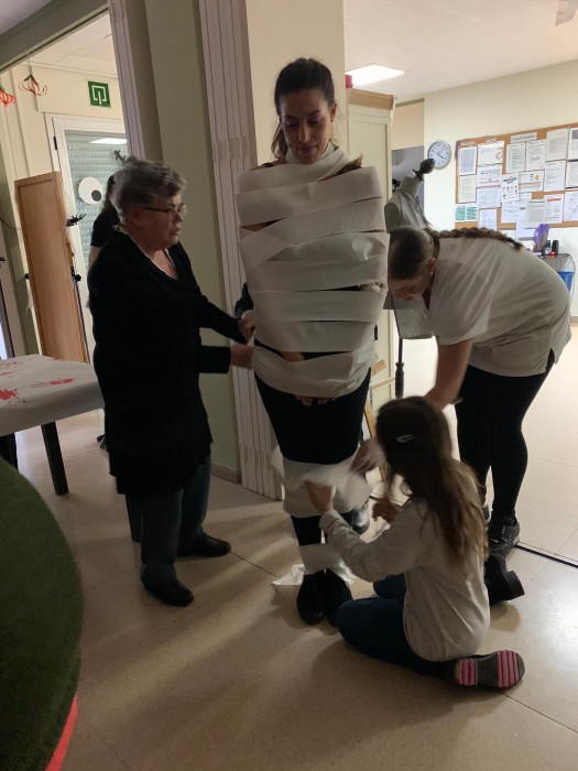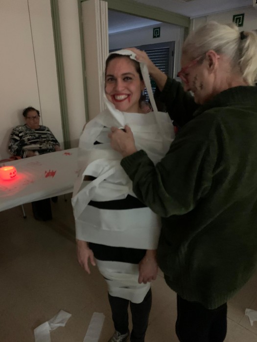 En el primer dels jocs, es tractava de ficar la mà en un recipient tapat amb un drap i endevinar que hi havia. En el segon, havien d'embolicar amb paper a una persona fins a convertir-la en una mòmia! Després havien de trobar el major nombre possible de fantasmes amagats pel centre. Un altre dels jocs era veure el dibuix d'una carabassa i després muntar la mateixa carabassa amb els ulls tancats. L'última activitat va ser ballar la cançó de Thriller!